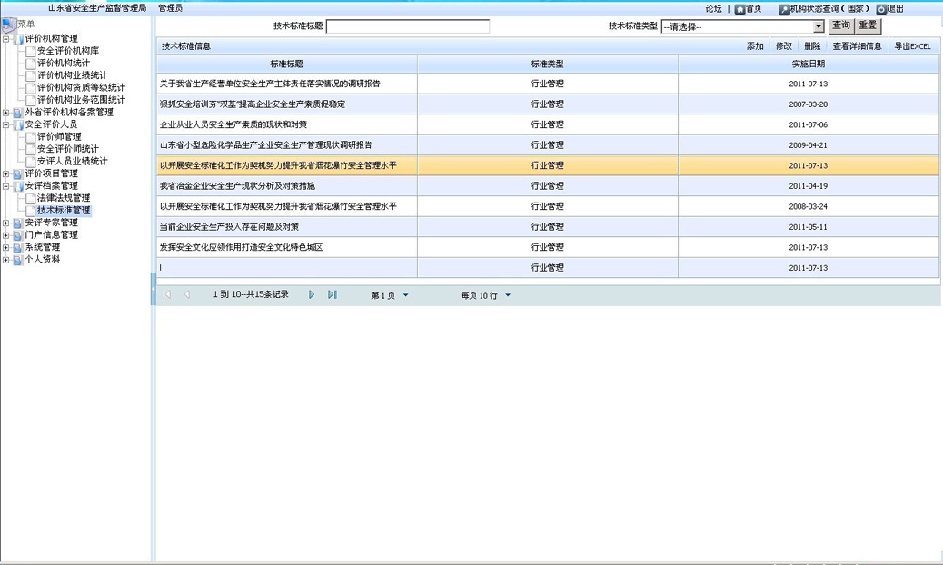 依據(jù)安全評價過程控制上報的數(shù)據(jù)對安評機(jī)構(gòu)業(yè)績、安全評價人員業(yè)績進(jìn)行智能統(tǒng)計匯總,并上報至國家安監(jiān)局。可根據(jù)安全評價機(jī)構(gòu)、年份、安全評價人員等條件進(jìn)行查詢,查看、導(dǎo)出、打印安評機(jī)構(gòu)或安全評價人員的業(yè)績表;可以統(tǒng)計分析比較各安評機(jī)構(gòu)的業(yè)績,為安全評價機(jī)構(gòu)的定期考核提供依據(jù)。