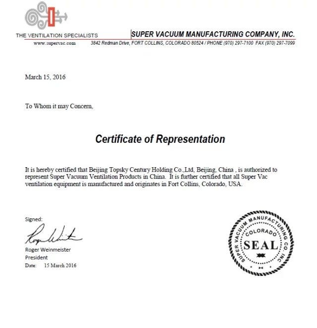 美國SUPER公司正式授權(quán)北京凌天世紀(jì)控股股份有限公司作為其機(jī)動(dòng)排煙機(jī),水驅(qū)動(dòng)排煙機(jī),電池驅(qū)動(dòng)排煙機(jī)在華的總代理。 SUPER是世界知名消防排煙裝備制造商。