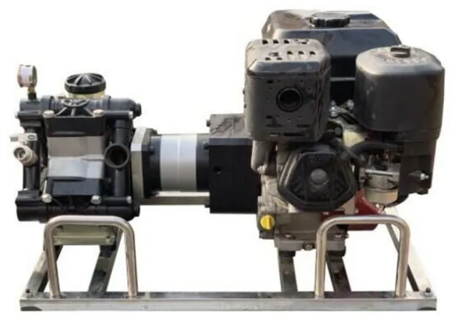 不銹鋼架,便于攜行。泵軸水平布置,減少震動(dòng)。水泵泵體為柱塞液壓隔膜泵。允許砂石顆粒通過,對(duì)水質(zhì)要求低,對(duì)發(fā)動(dòng)機(jī)功率損耗小。泵組可在橫向、縱向傾斜達(dá)到25°時(shí)正常工作。水帶直徑25mm,爆破壓力18MPa,表層滌綸長(zhǎng)絲,內(nèi)襯進(jìn)口橡膠,高壓森林接口連接。水泵配備的動(dòng)力裝置為強(qiáng)制風(fēng)冷四沖程汽油機(jī)。我們的行星減速機(jī)通過特殊的處理方式,在發(fā)動(dòng)機(jī)轉(zhuǎn)數(shù)超過2000轉(zhuǎn)的情況下,不會(huì)削弱發(fā)動(dòng)機(jī)的動(dòng)力,反而有助于發(fā)動(dòng)機(jī)的動(dòng)力,提高水泵的效率。