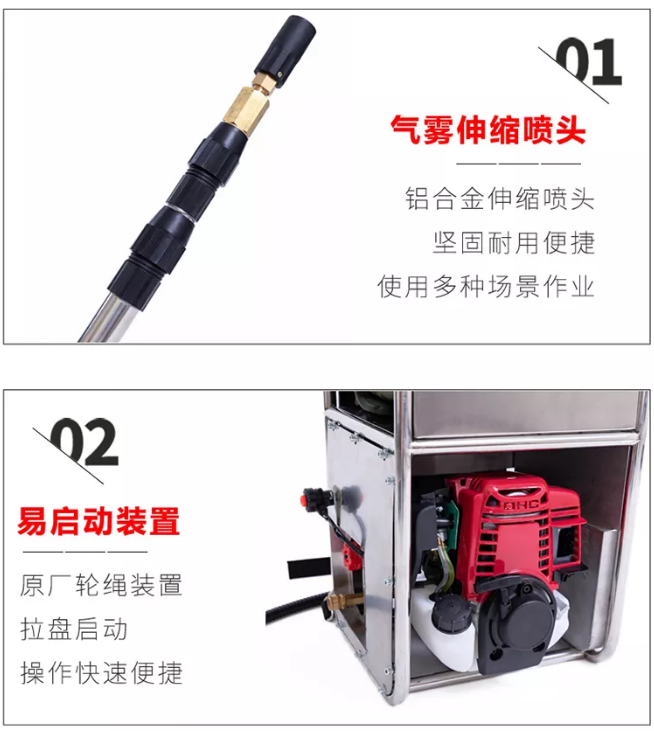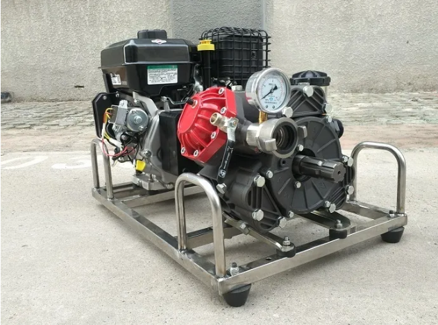 不銹鋼架,便于攜行。泵軸水平布置,減少震動(dòng) 水泵泵體為柱塞液壓隔膜泵。允許砂石顆粒通過,對(duì)水質(zhì)要求低,對(duì)發(fā)動(dòng)機(jī)功率損耗小。 泵組可在橫向、縱向傾斜達(dá)到25°時(shí)正常工作。 水帶直徑40mm,爆破壓力18MPa,表層滌綸長(zhǎng)絲,內(nèi)襯進(jìn)口橡膠,高壓森林接口連接。 水泵配備的動(dòng)力裝置為強(qiáng)制風(fēng)冷四沖程汽油機(jī)。