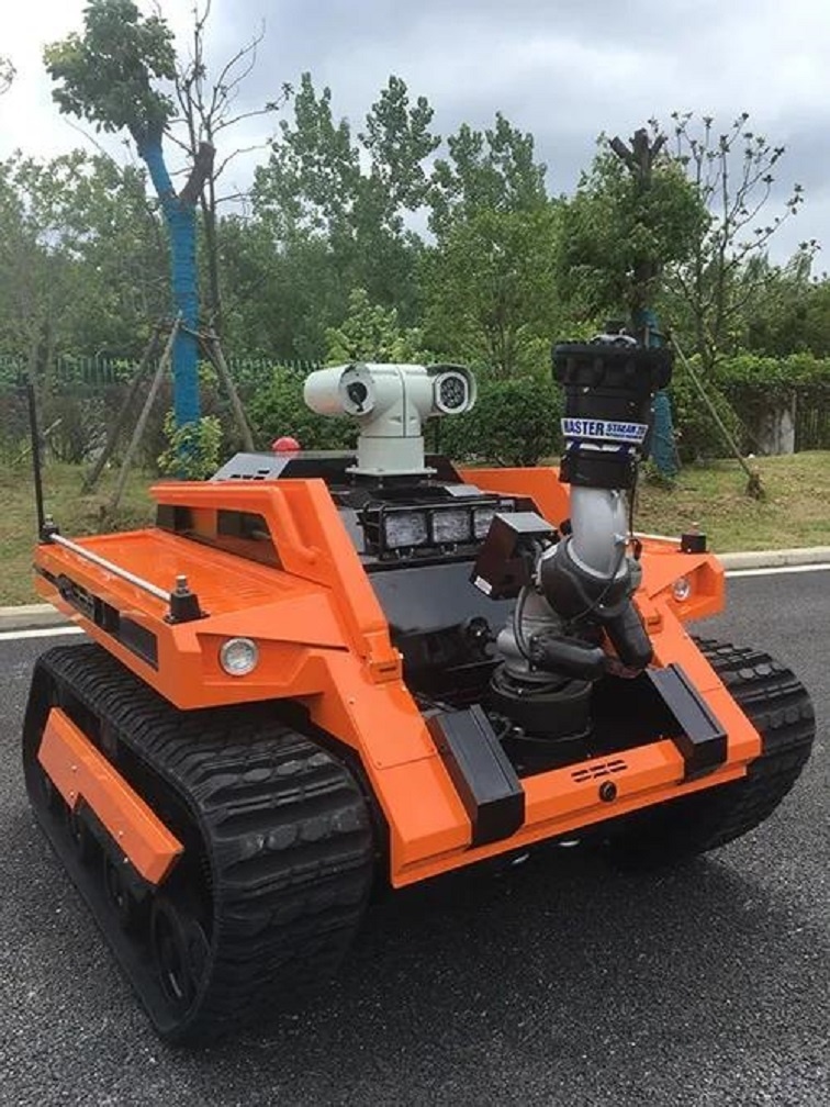 消防滅火偵查機(jī)器人,是代替消防員近攻火災(zāi)現(xiàn)場的理想設(shè)備。其功用包括:降塵降溫,水/泡沫滅火噴射,火場視頻信息/環(huán)境偵查等實時觀測;它運(yùn)動靈活,可原地轉(zhuǎn)向,最大爬坡度 62.5%。無線遙控400m~1km以上,遠(yuǎn)距離遙控操作確保消防員的人身安全,并達(dá)到最佳的安全作業(yè)效果。