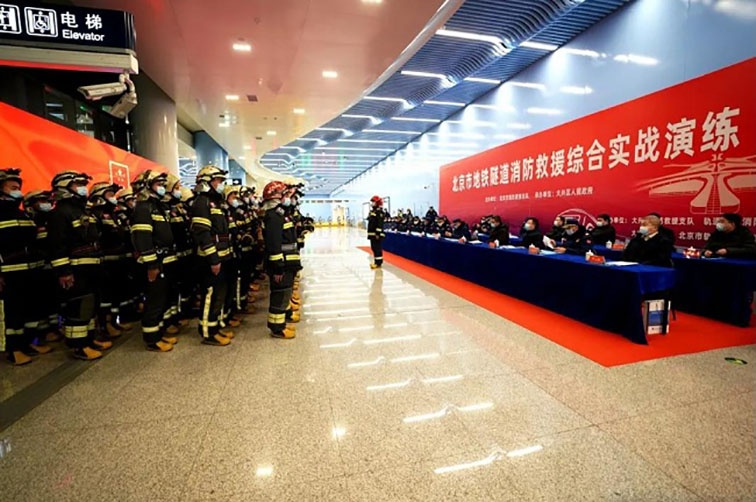 為全力做好2022年春運服務保障工作,防范化解重大安全風險,聚焦“全災種、大應急”救援需要和地鐵隧道火災滅火救援處置能力,1月21日凌晨,北京市全要素地鐵隧道火災滅火救援綜合實戰(zhàn)演練在北京地鐵大興機場線大興新城地鐵站開展。整個演練調集了10個消防支隊、52部消防車、248名消防救援人員參與。北京凌天2臺消防內攻偵察機器人參與到此次演練中。
