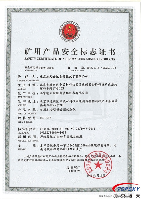 DSJ-LT8防爆執(zhí)法記錄儀取得煤安認(rèn)證