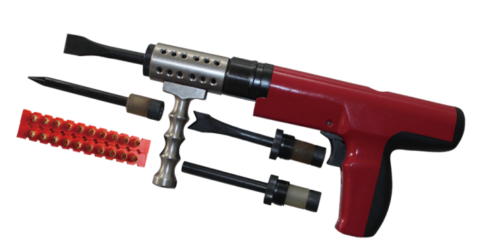 3、射擊時(shí),將毀鎖槍垂直在障礙面上,扣扳機(jī)擊發(fā),如未擊發(fā),需繼續(xù)保持緊壓工作面30秒種,才能拿起毀鎖槍,并重新供彈擊發(fā)。一次擊發(fā)后,用力將槍管拉出到最外端,然后用力再將之推到底,就完成一次退殼供彈過程,可進(jìn)行下一步擊發(fā)。平鏟用于鏟斷鎖鏈、護(hù)欄、螺栓等,圓柱鏟可用于擊毀鎖芯等。V型鑿可切斷鋼筋,切開鐵板等,尖鑿可對鐵皮打孔等。