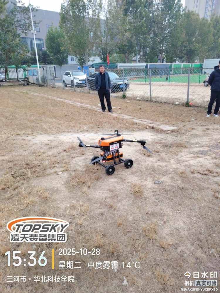 本無人機為北京凌天智能裝備集團研發(fā)的多用途陸空兩棲無人機平臺,采用四旋翼機身設(shè)計,載重大,續(xù)航長,并且機體折疊標準化負載接口、集成航電系統(tǒng),還支持選配雷達避障系統(tǒng)。同時,該無人機具備陸空兩棲功能,可以在地面行駛,行走系統(tǒng)可快拆。滿足消防滅火、應(yīng)急教援、物資運輸、環(huán)境監(jiān)測等不同場是的行業(yè)應(yīng)用。
