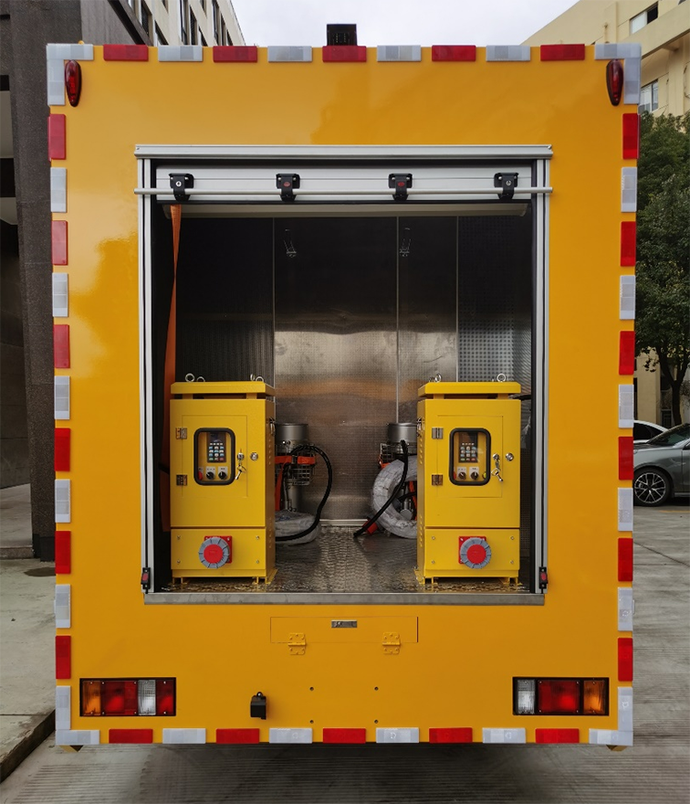 雙排座排澇車(1200m3),是在慶鈴二類汽車底盤的基礎(chǔ)上依據(jù)排水車的特點(diǎn),配置柴油發(fā)電機(jī)組、兩臺大流量便攜式潛水泵并整合照明設(shè)備等功能設(shè)計(jì)改裝成型的專項(xiàng)作業(yè)車,整車尺寸較小,通過性較強(qiáng),廣泛適用于各類搶險現(xiàn)場。