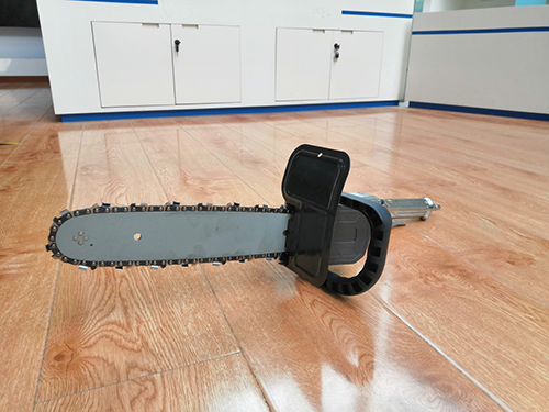 PJQL-4 礦用氣動(dòng)鋸(以下簡稱氣動(dòng)鋸),是我公司經(jīng)過多年的探索,在機(jī)電、通風(fēng)、采煤等各科室的高技術(shù)素質(zhì)科技人員的通力合作下,為煤礦開發(fā)出的礦用切割與開槽工具。氣動(dòng)鋸由鋸頭、鏈條、聚氨酯軟管三大部分組成,聚氨酯軟管將氣源和氣動(dòng)鋸連接起來,氣源提供的氣壓驅(qū)動(dòng)氣動(dòng)鋸高速運(yùn)轉(zhuǎn),進(jìn)行切割。工作時(shí),冷卻水通過導(dǎo)板中間的孔流向切割部位,起到冷卻和降塵的作用。并且具備雙重?cái)嗨Wo(hù)功能,氣動(dòng)鋸在切割時(shí)采取了濕法切割水冷卻,以避免切割時(shí)出現(xiàn)火花。可用于采掘工作面使用的煤層、巖石切割,用于密閉墻的砌筑,也可用于礦山救援時(shí)的混凝土與巖石破拆。