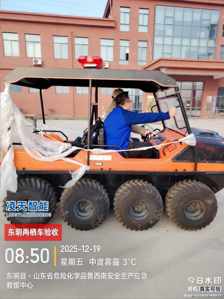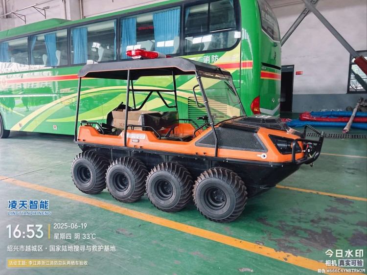針對(duì)水災(zāi)頻發(fā)的地區(qū),水域救援任務(wù)必不可少。但往往洪澇災(zāi)害、城市內(nèi)澇往往伴隨著惡劣的天氣和崎嶇的地形,沖鋒舟需要多次搭載不同交通工具并數(shù)次轉(zhuǎn)移,水陸兩棲全地形車可以輕松通過水淹、泥濘、沼澤等環(huán)境,無需人力搬運(yùn),實(shí)現(xiàn)陸地駕駛和水中行走自由切換,以最快的時(shí)效抵達(dá)現(xiàn)場實(shí)施救援。