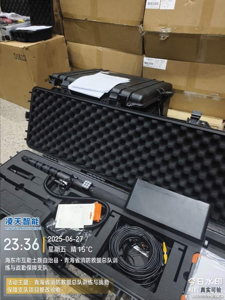 本產(chǎn)品由主機(jī)、電動(dòng)音視頻探頭、熱成像探頭、探桿、電池2塊、肩帶1根、防震包裝箱等組成。