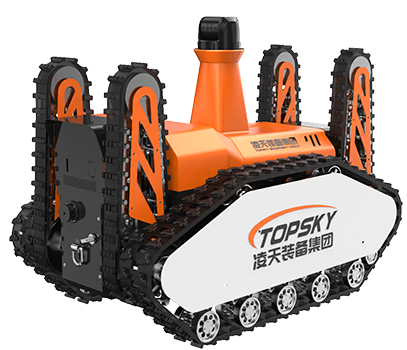 車體設(shè)有擺臂,可越過垂直700mm障礙,跨越1米的壕溝